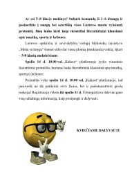 Rugsėjo 26 d. mūsų gimnazijoje buvo paminėta Pasaulinė aplinkos ir sveikatos diena. Iliustruotame stende mokiniai galėjo susipažinti, kaip užterštas oras, vanduo ar dirvožemis daro žalą žmogaus sveikatai. Pamokų metu buvo primenama, kaip kiekvienas galime prisidėti prie gamtos išsaugojimo – tausoti Daugiau …